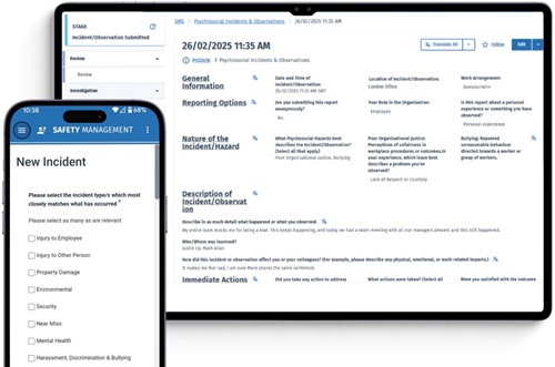 Supporting systematic management: ISO 45003 provides a framework for managing psychosocial risks in the workplace, guiding organisations to identify hazards, assess associated risks, implement appropriate controls, and monitor their effectiveness as part of an ongoing improvement process. Technology can support this continuous cycle. Digital risk assessments can prompt consideration of psychosocial factors. Automated workflows help to ensure that psychosocial incidents trigger timely investigation and response. Dashboards can visualise trends, track control effectiveness, and support data-driven improvements over time.